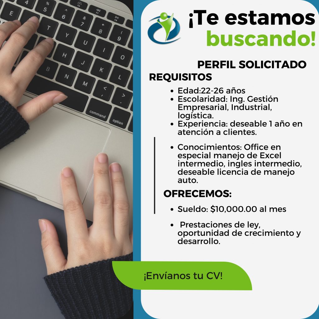 Conocimientos: Office en especial manejo de Excel intermedio, ingles intermedio, deseable licencia de manejo auto.